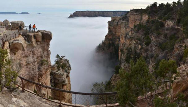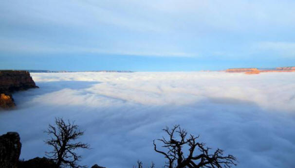 Ameriška služba nacionalnega parka je objavila slike 12. decembra, ki kažejo znake prisotnosti v znamenitem Grand Canyonu naravni pojav, znan kot inverzijska oblačnost. Vse kanjon je bil prekrit z odejo nizko letečih oblakov.