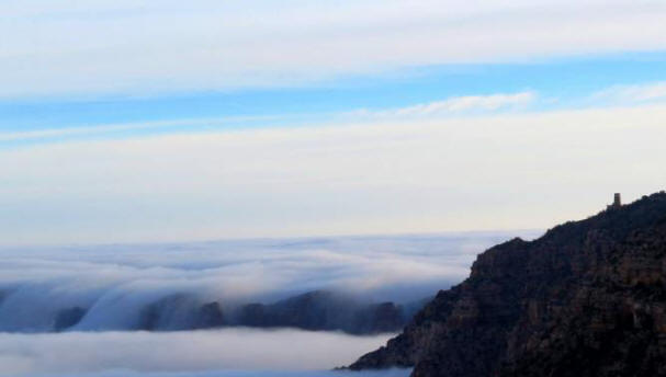 Inverzija oblakov je atmosferska anomalija, pojav, ki nastane, ko je masa toplega zraka nad mrazom, ne da bi se pustil dvigniti. Kot rezultat tega naprej oblaki na nizki nadmorski višini. Overclocking jih lahko le veter, nad kanjonom pa ni bilo.