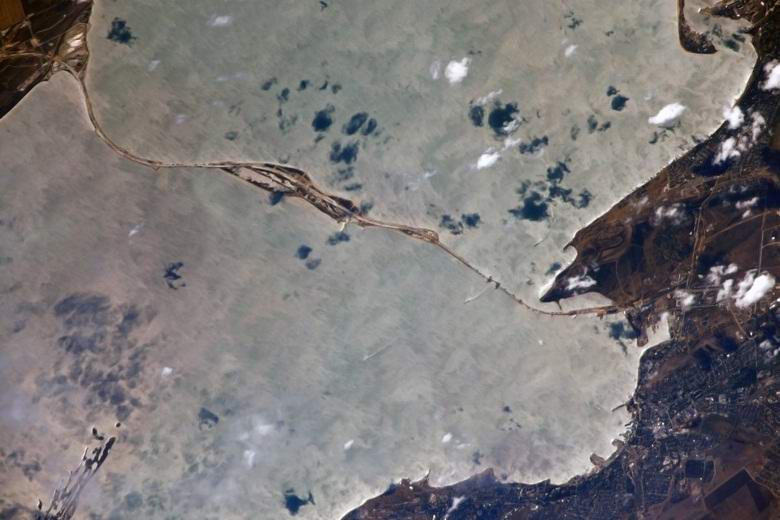 Astronavti ISS in vsi, kot se je izkazalo, tudi z Z velikim zanimanjem opazujejo gradnjo prometnega prehoda oz. ki bo povezal krimski polotok s celinsko Rusijo. Na ljudje v orbiti lahko ta proces opazujejo v celoti glasnosti in v vsej svoji lepoti, nasprotno, recimo, iz iste gradbeniki.