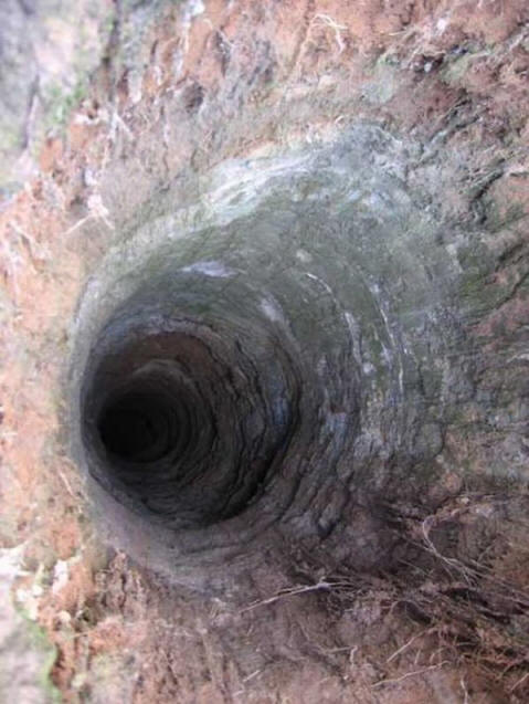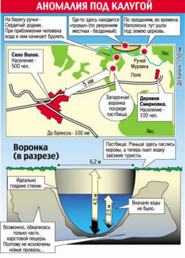 Čudna jama, najdena blizu Harkova v gozdu. Globina 18 metrov, premer 1,2 metra, stene so gladke. Vozite gor ni dovoljeno. V bližini ni kopice izbranih zemljišč. Niso merili sevanja. Spodaj veje na stranice 2-3 metre široke 40×60 cm. Torej nihče ve, kdo ga je izkopal.