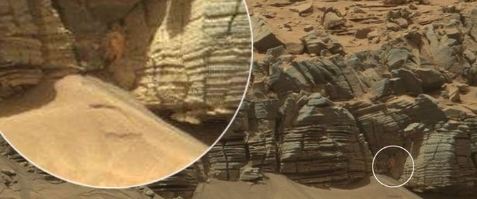 Spet natančni spletni raziskovalci marsovskih posnetkov najdeno na eni od fotografij, ki je bila objavljena na spletni strani Nasine Julija letos nekaj izjemnega, zelo podobnega bivanju bitje.