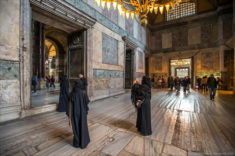 Končno je tempelj že toliko stoletij skrival nišo, iz katere zasliši se skrivnostni hrup. Legenda pravi, da v času, ko Turki so vdrli v stolnico, tukaj so molili kristjani, duhovnik celo ni mislil prekiniti molitve. Ko pa nad glavo spremljevalca templja Turške sablje so utripale, starec je nenadoma stopil v zid – in skrivnostna niša se je zaprla za njim. Pravijo, da je duhovnik še vedno od takrat moli tam, zato se sliši ta nerazumljiv hrup – ali so starčeve besede tihe ali je veter bučen. Ko pa sveti tempelj Sophia bo spet postala kristjanka, starec bo zagotovo prišel iz stene in nadaljujte službo v imenu trditve božanske ribolov …