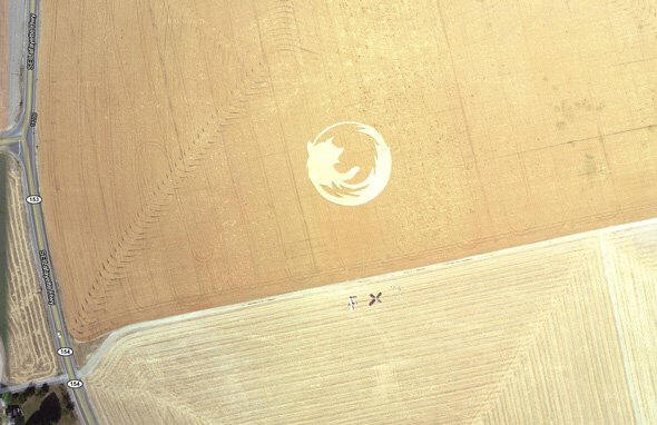 Ogromen krog na polju v obliki Firefox logotipa v Oregon