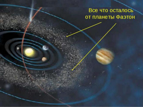 Trenutno je znanih približno dva tisoč asteroidov – brez oblik trdnih blokov najrazličnejših velikosti. Premer nekateri od njih – 0,5 kilometra. Eros so odkrili leta 1898. Njegovo Dolgo časa velja za edini asteroid, ki sega daleč v orbito Marsa. Toda Eros je dobil tekmeca – Ganymede, Kupid, Apolon in Hermes. Ti mali planeti še »hodijo« naprej v orbite Venere in Merkura. “Filmska zvezda” neba Icarus, ki je bil odprt leta 1949, velja za prav. Ta asteroid ima najmanjšo oddaljenost od sonca in je vlečena okoli njega v 400 dneh. Premika se petkrat hitreje kot njegovi bratje. Ikarus se raje oddalji od naše svetilke blizu Zemlje vsakih 19 let. Ta bližina ga je pripeljala “hrupno uspeh. “Mogoče so vsi ti asteroidi znak smrti petega velikega telesa. Sončev sistem, ki se je zgodil, po A. Gorbovskem, 11 Pred 652 leti. Izkazalo se je, da če vse to asteroid pas “oblikovan” v eno telo, bi dobili planet s premerom 5900 kilometrov. Bila bi manjša od Marsa in večja od živega srebra. V njegovem Sovjetski astronom S. Orlov je predlagal, da bi to poklical zdaj že obstoječi planet je Phaeton, imenovan po mitskem junaku. Grška mitologija pravi: “… bog sonca je nepremišljeno prisegel Helios svojemu sinu Phaethonu, da izpolni vsako zahtevo. Mladenič Zaželel je eno stvar – jahati kočija Sonca po nebu! Oče je bil osupljiv: tudi Zevs tega ne zmore. Začel sem odvračati nerazumni deček: konji hudomušni, nebo je polno grozot – rogovi Bik, Kentavr lok, Leo, Škorpijon – česar pošasti niso Spoznali boste na cesti! Ampak kje!