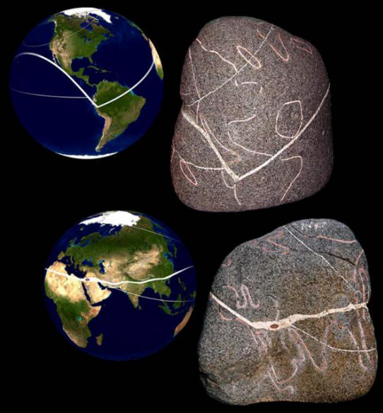 Morda bo tretji izjemen izvid lahko spodbudil odgovor Sotomayora. V predoru La Mana, enem najstarejših Zemeljski globusi, tudi kamniti. Na daleč od popolne žoge, naprej katerih izdelava je morda mojstra preprosto prizanesla, vendar zaokrožen balvan, poslikan z znanimi slikami iz šolskih časov celine.