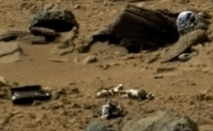 Mars je izgubil kisik tudi mikrobe. Zato naprej Rdeči planet popolnoma odsoten od procesov razpada in razpad. Tako, da je lahko telo planeta prebivalca tam za vedno se spremeni v mumijo. Toda najbolj izstopa da je telo humanoida, ki ga najdemo na slikah, oblečeno v vesoljsko obleko in tudi nekaj, kar spominja na čelado. Tuja mamica leži na boku, prekrižane noge. Nedaleč od nje so raztreseni drobci navadnega raketni motor, malo naprej v skalo pa štrli bojna glava letala. Uporabnik, ki je odkril ostanke humanoida na slikah z Rdečega planeta celo posnel video, kjer podrobno nakazal, kako najti to mesto na nasinem spletnem mestu.
