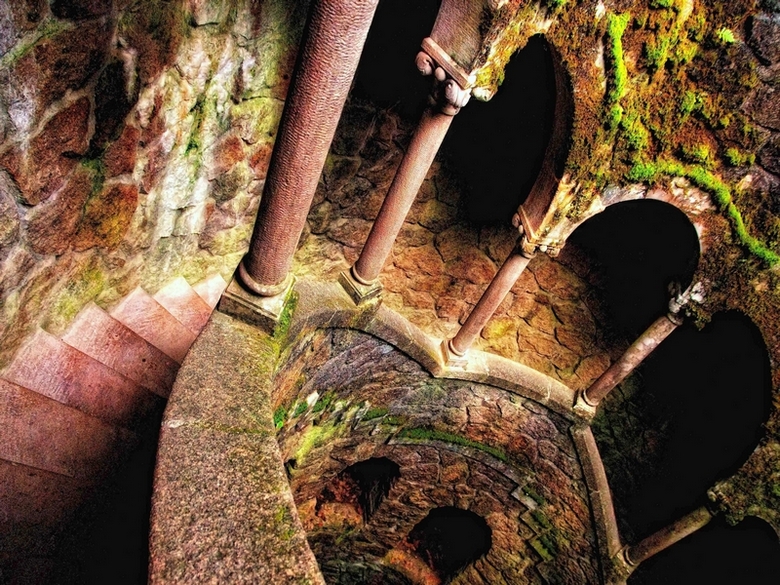 V portugalskem mestu Sintra je veličastno palače in parkovni kompleks Quinta da Regaleira, kjer je starodavni grad in edinstveno kapelo obdaja isti stari park z razkošno jezera, fontane, vodnjaki, grotle in številni kiparske kompozicije.