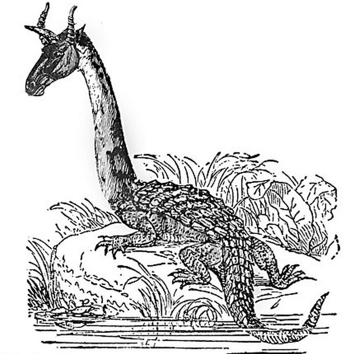 Tako so domačini poimenovali devetmetrskega plazilca, v katerem živijo mangrove nedostopna območja v notranjosti Gambije. Čudno bitje ima telo krokodila in vrat žirafe na glavi kar tri roge. Plazilca je zelo težko videti, ker je glavni večino svojega časa preživi s potopom v močvirje.