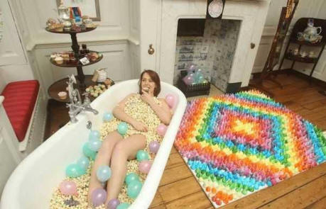 Gostje sladkega obrata bodo vabljeni, da se “pojedo” sami pot skozi okna in stene, okrašene z macaroons, in pogostitev na preprogah in na policah s sladkarijami. Najprej na svetu bo “hotel” v celoti izdelan iz tort dobrodošli svoje goste samo eno noč. Gostom bo na voljo blazina iz vanilijeve gobe, pa tudi preproga ročno izdelan, marljivo izdelan iz meringue. Institucija ki se nahaja v Soho, v osrednjem Londonu, in je rezultat delo 14 umetnikov, ki so pekli več kot 2000 ur in 900 ur za okrasitev hotela, pri čemer porabijo več kot 600 kilogramov sladkorja.