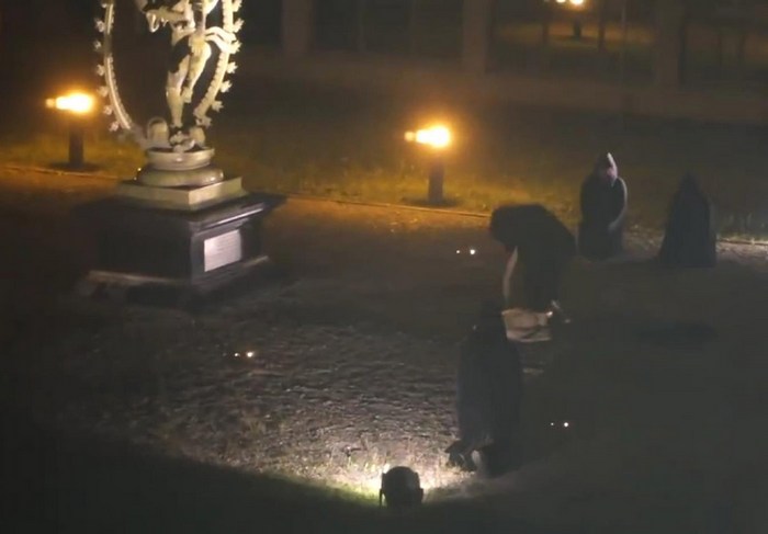 Iz njega je razvidno, da preživi osem ljudi v črnih kapucah obredni umor ženske, oblečene v nekaj belega. Mistično umor se izvede z nožem. Omeniti je treba, da strelec je viden v odsevu okna, oblečen je tudi v črni hoodie, in ker je mogoče presoditi, da je to deveti udeleženec incidenta – ali mistifikacije ali pravzaprav obredni obred.