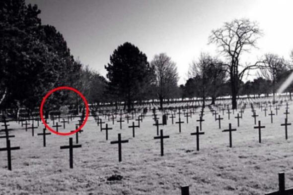 Britanski najstnik si bo vse življenje zapomnil ogled vojske pokopališče v občini Neuville-Saint-Remy, Francija, kot je po naključju ujel pojav duha med grobovi Škotski vojak.