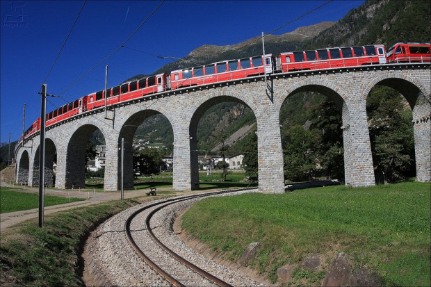 Starost te zgradbe je presenetljiva – odprli so jo leta 1908. Potem Obstaja kamniti viadukt, ki danes vpliva na našo domišljijo, zgrajena pred več kot stoletjem. Sprva ta odsek železnice skupaj z viaduktom pripadala železnici Bernina, vendar v 1943 ga je kupila železnica Reyta, ki do še vedno vsebuje viadukt v tako odličnem stanju.