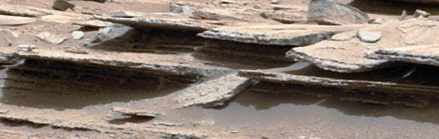 Izvirno fotografijo si lahko ogledate na spletni strani NASA – tukaj. Isti kamni lahko najdemo v potokih in grapi oz. prehaja skozi plasti dolomita na Zemlji.