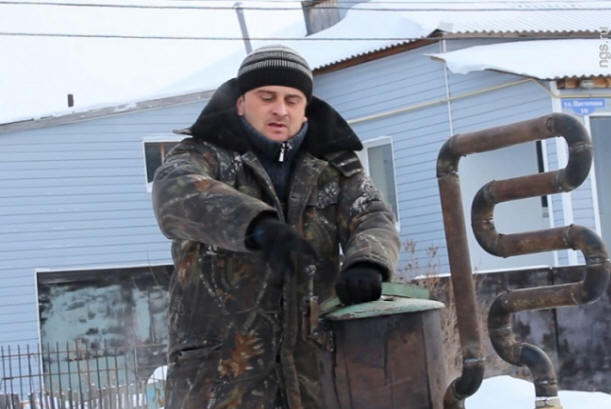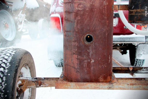Fotografija s Open Source “Torej se izkaže, da so visoke temperature kemična reakcija – piroliza. Vidite, gorijo premog, – kaže Omsk na luknji s premerom približno 10 cm – Izkazalo se je vodik in ogljikov monoksid in po izgorevanju ogljikov dioksid zapusti izpušno cev plin in vodna para. V resnici gre za eko avtomobil: ne poškoduje oči, je poseben brez vonja. Če želite prižgati peč, morate odpreti rdeče pipe, v vstavite luknjo ventilatorja, napolnite gorivo in ga prižgite. ”