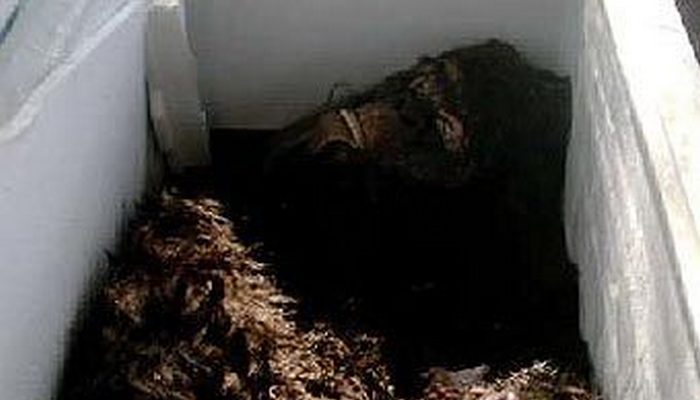 In spet to truplo damo v zamrzovalnik, izmerimo ga dva metra in pol visok, težak skoraj dvesto trideset kilogramov, prav tako pa nameravajo še pokazati širšo javnost na posebni tiskovni konferenci v Kaliforniji.