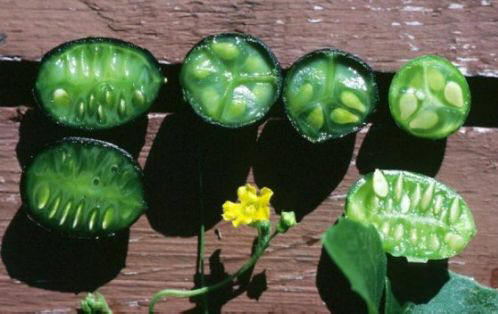 Фото из открытых источников Мелотрия шершавая – многолетняяliana iz pragozda ekvatorialne Afrike. Majhna zeleno sadje z izrazitim marmornatim vzorcem po okusu spominjajo na kumare, ki jih lahko jeste sveže ali v pločevinkah.