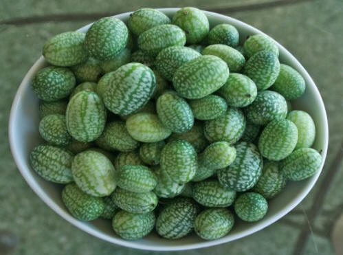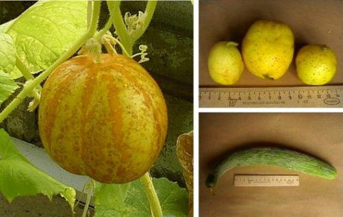 Fotografije iz odprtih virov In lahko tudi prečkate rdeče kumare z melono, bučo in navadnimi kumarami dobiti smešni hibridi nenavadne barve. Afriška mini kumara – Мелотрия (Melothria scabra)