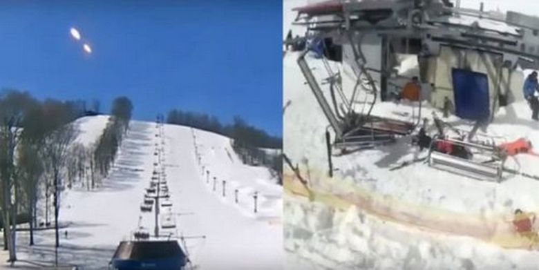 Kmalu, ko se je na nebu pojavil ta par fantastičnih luči, vlečnica se nenadoma zlomi, torej z veliko hitrostjo začne teči nazaj. Smučarji poskušajo skočiti z njega, kolikor se da priložnosti pa ne uspejo vsi, ampak zato poročajo novinarji, 8 ljudi zaradi tega incidenta hudo poškodovan, hudo ranjen, in dva smučarja bili celo na intenzivni negi, tudi nosečnica.