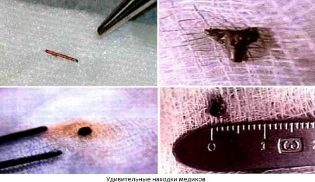 Občasno se zdravniki znajdejo v glavi, v kosteh in mehki tkiva teles svojih bolnikov so tuji predmeti. Prevozniki sami pojma nimajo, od kod prihajajo te kroglice, kocke itd. Vsaditev teh vsadkov se izvede na nedostopni ravni sodobna medicina. Tujci se že čipirajo na zemljanih?