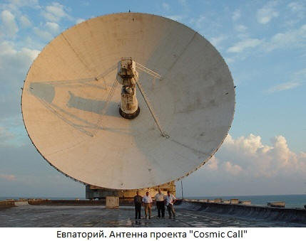 Kozmični klic in otroško sporočilo V okviru projekta Kozmični klic leta 1999 spet iz ECDS v 4 sejah je bil poslal več kot 50.000, razdeljenih na 2 bloka. Prva je vsebovala čisto znanstvene informacije (kot “sporočilo Areciba”), drugo – osebna sporočila vseh, ki bi to lahko plačali. Letel v vesolje celo “Brazilija je prvak!” Tako zanimiv korak je bil zagotovljen financiranje projektov. Leta 2003 je bil encore eksperiment ponovil. Leta 2001 spet iz Evpatorije sporočilo, ki ga je imel zapletena struktura, ki vsebuje glasbene fragmente, slike in besedila. Zaradi oglaševanja so bili v projekt vključeni tudi otroci to medzvezdno sporočilo je ostalo v zgodovini kot “Otroško sporočilo. “Pri zadnjih promocijah si lahko zabeležite” Sporočilo z Zemlje ” (9. oktober 2008) in “Pozdravljeni z Zemlje” (28. avgusta 2009). Bilo jih je več zaloge, ampak to je bil že čisti nastop zaradi črpanja denarja, ne brez znanstvene vrednosti.