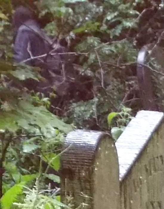 Na spodnji sliki lahko dejansko vidite človeška figura v sivi kapuco, ki stoji med grobovi in debela gostišča. Karen pravi, da niti ona niti njen mož Lenny opazili v času streljanja na pokopališču ni nič nenavadnega. Vendar pa pozneje, ko pogledajo fotografije, posnete na dopustu, so Spoznali so, da so ujeli nekaj čudnega in verjetno zastrašujočega.