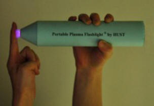 Skupina znanstvenikov iz Avstralije in Kitajske je zgradila prototip prenosni generator hladne plazme, ki deluje iz 12-voltna baterija in ne potrebuje oskrbe s plinom oz zunanja visokonapetostna moč. Kot je prikazano lani plazemska krtača, nova naprava, namenjena dezinfekciji, na primer roke. Sistem ustvarja električne izpuste 100 ns dolg in s hitrostjo ponovitve 20 kHz. Te izpusti ustvarjajo plazmo v navadnem zraku s temperaturo le 20-23 ° C (in naprava je opremljena z varovalko, ki ne omogoča dvig temperature zgoraj). Curek takšne plazme ne povzroča ne škoduje koži, vendar se učinkovito bori proti bakterijam. Za preverjanje naprave, njeni avtorji so na podlago skoraj zrasli 30-mikrometrski gosto folijo bakterij Enterococcus faecalis. Skupila je 17 plasti mikrobov.