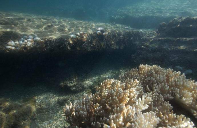 Američan poroča, da je s tovariši letel v helikopterju in, v gledal vodo za določen trenutek, je nenadoma opazil nerazumljiva zgradba, ki gleda iz oceana. Nahajalo se je v daleč od kopnega in bilo je popolnoma drugače od koral greben je zato takoj pritegnil pozornost potapljača. Vendar pa po Suttonu so se ob vstopu v čoln začele ruševine zidu ta kot je zaradi valov skoraj neviden. Najverjetneje do zaradi tega podvodne ruševine in ostal ves ta čas ne opazili lokalni ribiči. Tudi med plimovanjem starodavno zgradbo so elementi na splošno skrivali, kar predstavlja za ladje in čolne nedvomna nevarnost.