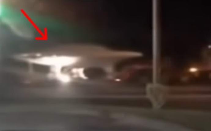 Spremljal je tovornjak, ki se je vozil proti letalskim silam osnova ni nič drugega kot svetel “leteči krožnik.” Kamion v video posnetku konvojanega NLP-a se je bilo treba ustaviti križišče, da bi zamudili motorno kolo utripajočih avtomobilov sirene policisti.