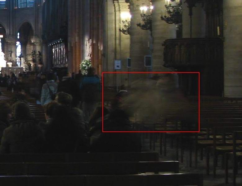Obe fotografiji, ki ju je posnel turist znotraj legendarnega katoliški tempelj Notre Dame, prikazujejo skrivnostno meglo, ki lebdi ali lebdi v zraku ravno sredi obiskovalcev katedrala. Seveda je cuchulan takoj pomislil na duha kot pravkar izvedel to odkritje. Fotograf verjame, da je na podobnem mestu gotovo bi morali živeti ljudje z drugega sveta in eden od njih mu je menda se je uspelo ujeti na te okvire.