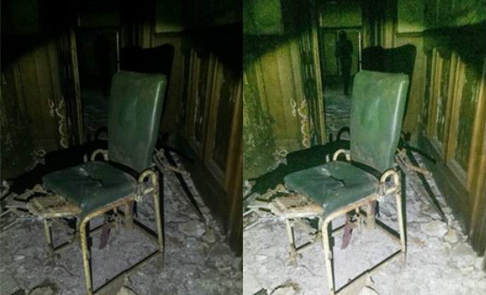 Avtor slike je Hannah Irwin. Po dekletu je ona samo hodil po bolnišnici in fotografiral vrata. Doma ob pogledu na slike se je Angležinja odločila za urejevalnik slike, da se prepriča, da ji nič ne uide iz oči. “Odprl sem urejevalnik fotografij in naključno začel vrteti različne drsnike. Na eni od slik je bil star stol in ozka vrata zadaj njega. Podobo sem naredil svetlejšo in samo zgroženo. Tam stoji tanka človeška figura. Točno se spomnim, da v tem nismo nihče kraj ni slišan. Ne bojim se, ker duh se je izkazal kot zapuščena bolnišnica (gremo tja in prišel), ampak iz razloga, ker nam je stal zelo blizu, je gledal za nami in nikakor ni izdal njegove prisotnosti. Zelo je grozno zavedati se. ”