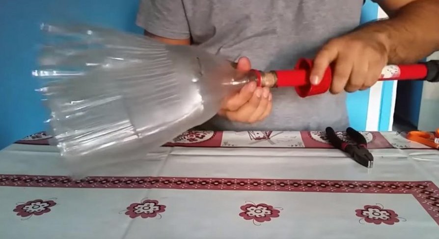 V našem primeru seveda potrebujete tudi kar nekaj plastike – samo pet dvolitrskih (in en in pol litra, če potrebujete manjše metle) steklenice na metlo.