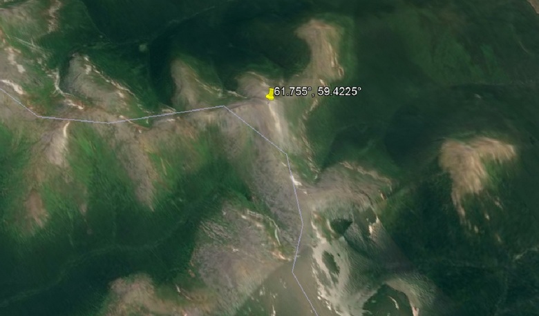 In tu ste – skoraj na samem vrhu gore Kholatchahl, na pobočju katere je umrla skupina Dyatlov, z vzhoda na njeni strani leži disk v obliki diska NLP (koordinate – 61 ° 45.687’N, 59 ° 25.724 ‘E). Ladja je sorazmerno velika, vsaj 20 metrov noter premer in višina približno 10 metrov. Poleg tega je “leteči krožnik” Očitno so pristali tu čisto lepo, ker resne škode ne opazimo.