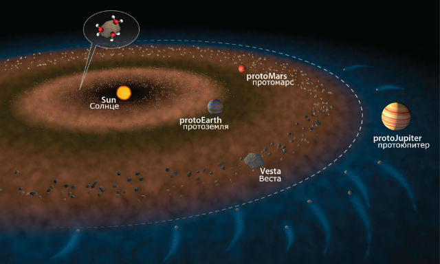 Študije so pokazale, da asteroid Vesta vsebuje isto izotopska sestava vodika v ogljikovih hondritih kot Zemlja. To, v V kombinaciji s podatki o izotopih dušika to kaže hondriti so najverjetnejši pogosti vir vode. Se pravi, voda naprej se je na našem planetu pojavilo 135 milijonov let prej je veljalo.