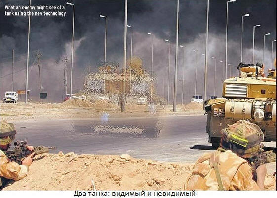 Leta 2007 so Britanci pokazali neviden tank. Bil je prekrita s ploščami, od katerih vsaka ni bila nič drugega kot zaslon. Na desetine kamer so posnele sliko za rezervoarjem in prinesel na zaslone plošč. Na željo občinstva je tank lahko naj bo ne samo neviden, ampak ga tudi spremeni v tovornjak oz avtomobila, na zaslonih prikazuje ustrezno sliko. Učinek je bilo super.