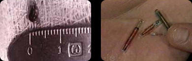 Fotografije od odprtega viri Ena od teh zgodb se je začela leta 1995, ko hipnolog Derrel Sims je kirurgom pokazal rentgen noge človek se je nekoč vkrcal na NLP. Na prvi pogled se je zdelo da je bila izvedena kirurška operacija na nogi in razločljiva na Na fotografijah so tuja telesa nekaj podobnega tradicionalnim jeklenim nosilcem. A izkazalo se je, da ta ženska ni bila nikoli operirana z nogo. Bil je odločili, da bodo s trupla kirurško odstranili skrivnostne predmete žrtve. Izkazalo se je, da je drugi kandidat za operacijo moški in vsadki so mu vsadili v roko … Tako pravi kirurg Burt Clemens. “Odločil sem se, da bom obe operaciji opravil isto dan. 19. avgusta 1995 se je klinika pripravljala na sprejem bolnikov celotna ekipa približno desetih ljudi – jaz kot kirurg, anesteziolog, psihologinja, medicinska sestra, predstavniki lokalnega ufološkega centra, snemalec, dva stenografa. Pred operacijo vsi bolniku je bila odvzeta določena količina krvi. Dejstvo je, da v literatura vsebuje veliko zgodb, ki so pridobljene na Božji svetlobni vsadki v zraku izginejo, izhlapijo ali zdrobiti v prah. Odločil sem se, da je najboljše mesto za njihovo shranjevanje tekočina iz telesa žrtve ugrabitve. Kri po mojem mnenju je bilo idealno okolje za ohranjanje skrivnostni vsadki. Končno je legla prva pacientka Patricia na operacijsko mizo. Dolgo sem se razrezal v iskanju neznanega tuje telo. Nenadoma se je pacientova noga kljub temu zasukala da je bila pod dvojno anestezijo! Avtopsijo smo nadaljevali v kraj, ki je povzročil to reakcijo, ni bil zmoten: skalpel izpostavil majhen sivkast predmet. Bil je lepo ujet in odstranili in v tem trenutku je pacient znova zdrknil od navideznega bolečine. V moji praksi se je to zgodilo le ob izbrisu tumor je zrasel neposredno iz živca. Predmet je bil trikotne oblike, približno 0,5 do 0,5 cm in je prekrit z zelo gosto membrano. Vsadki so navidezno magnetizirani – držijo se rezila skalpeli. Nato smo se lotili drugega vsadka Patricia. Njegovo ekstrakcija je bila prav tako boleča. Izkazalo se je, da je bil vsadek N 2 zaobljen, velikosti semena melone in prekrit z isto membrano. V čas operacije, ki je bila izvedena na drugem bolniku med ekstrakcijo implantat je imel enako bolečo reakcijo in izkazalo se je popolnoma enako kot vsadek N 2 iz telesa Patricia. Toda živeli so v različnih delih Teksasa in so se prvič srečali tik pred odhodom meni. “V Houstonu je kemik Glen Manuel te objekte prvič izpostavil ultravijolično obsevanje: vsa tri pod njim fluorescirajo svetlo zelena. Ista barva je vidna pod ultravijoličnimi in na nekaterih območjih ukradene kože. Uspelo se je sleči raziskali membranske predmete. Gola črna, sijoča kovinska površina. Študija membrane je pokazala, da to je sestavljen iz beljakovin in keratina – posebne trdne snovi, del las in nohtov. Vzorci tkiva, ki meji na ekstrahirani vsadki so bili temeljito analizirani. In takrat ni razkril niti najmanjših znakov vnetja in infiltratov obstaja vse, kar spremlja običajno reakcijo organizma na tujek telo. V nos so mi postavili dolgo cev, “so jo dali Dobil sem dolgo cev v nosu in nekaj stisnil globoko v glavo. Sem Ne vem, kaj je bilo, a potem so me eno leto mučili glavoboli bolečine. “S takšno pritožbo se je obrnil na desetine zdravnikov 30-letnika blagajnica Astrid Ramush, ki jo je povedala v noči na 18. maj 1993 nekatera bitja so jo vzela iz postelje na njihovo vesoljska ladja. “Ko sem govoril o svoji ugrabitvi tujci, vsi so me jemali za norega. Vendar zdaj prisiljeni mi verjeti, kajti to so neposredni dokazi. ” Dokaz o obstoju vsadkov je prejel dobro znan Portugalski kirurg Antonio Borja. Junija 1994 v je v portugalskem mestu Braga izvedel edinstveno operacijo – odkrili in odstranili miniaturno napravo iz pacientove glave, kar je po mnenju znanstvenikov, ki so ga preučevali, najverjetneje radijski oddajnik, ki nadzoruje vsa gibanja ženske. “Razumem, zakaj drugi zdravniki niso mogli določiti vzrok za migrene, pravi zdravnik. – Dejstvo je, da je to mehanizem, ki smo ga izvlekli, je izdelan iz nenavadnega materiala, ne vidno na rentgenu. Samo temeljit pregled pokazali prisotnost nekakšnega tujega predmeta v pravem časovnem obdobju režnja možganov. Nihče od živega na Zemlji ne bi mogel storiti podobna vsaditev, ker sodobne kirurgije še niso dosegle to raven. “Richardu Priceu iz zvezne države New York med ugrabitvijo leta 1955 so vesoljci v telo vnesli “nekaj”, kar je izšlo skozi kožo šele po 34 letih. To “nekaj” se je izkazalo za valj en in štiri milimetre debel. Njegova analiza je bila opravljena naprej Oddelek za fiziko, Massachusetts Institute of Technology vodil ga je dr. David E. Pritchard in pokazal to lupina vsadka je bila sestavljena iz 90 odstotkov ogljika, tri odstotek kisika in sedem odstotkov tantala. Vsadki v ugrabljena maja 2000 v ameriški reviji Moufon UVOJournal «je objavil članek ameriškega kirurga Rogerja K. Leira, osebno odstranjevala vsadke iz ugrabljenih. Zadnji operacijo ekstrakcije implantata je opravila skupina kirurgov pod Dr. Leir 5. februarja 2000. Od avgusta 1995 5. februarja 2000 je vodil devet takšnih operacij. Zdravnik je v svoji knjigi opisal izkušnje predhodnih osmih operacij. Vesoljski vesoljci in Scalpel, objavljena pod pokroviteljstvom Ameriški nacionalni inštitut za znanstvena odkritja. V Zaradi osmih operacij je bilo okrevanih devet bolnikov. vsadki. Le eden od njih je bil medicinski fragment epruvete, ni jasno, kako so se spravili pod kožo, ostalo je pokazalo izjemno intrigantne fizične lastnosti. Trije vsadki so bili uvrščajo v kategorijo nekovinskih predmetov in pet v kategorijo kovina. Izgledali so nekovinski vsadki sivkasto beli grah, kovinski so bili pokriti zelo čudno bleščeča lupina temno sive barve, za katero se je izkazalo, da je tako močan, da ga niti kirurški skalpel ni vzel. Avtor zdravniki pravijo, da nikoli niso izvlekli ničesar takega organizem bolnikov. Kovi