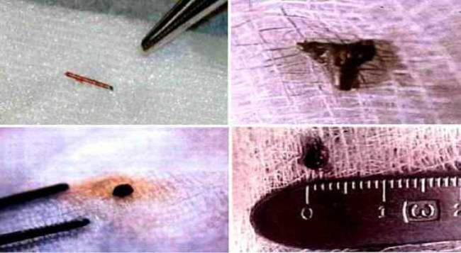 Bilo je kot “matrica z navadnimi kvadratnimi celicami, ki vsebujejo vključke v obliki binarne kode. “Psevdoznanstveni javnost, in po njej je vseprisotni tisk to zakrknil predmeti “vsadki” (lat. “vsaden v telo”). Zato strinjamo se, da nekatere predmete imenujemo nebiološki izvora, ki ga je v živo tkivo vtisnilo neznanka na način in z neznanimi nameni. Vendar na začetku naše majhne članki obravnavajo primere zgolj manifestacije kovin v telesu Sapiens. Seveda, kovinski drobci, ki se pojavljajo v človeška telesa zaradi poškodb na bojišču, domače in industrijske poškodbe, kirurške operacije itd. tukaj ne bodo šteli za trivialne, čeprav v prej omenjenem V teh primerih se manifestirajo zelo zanimivi in skrivnostni pojavi. Pavla Bragg, avtor priznanega dela “Post”, opisuje incident, ki se mu je zgodil. Ne morem jamčiti za natančnost ponudbe, ampak potek dogodkov je opisan popolnoma pravilno. “Bil je štirinajsti dan letno mesečno obdobje posta. Zaplul sem s čolnom potek majhne reke. Nenadoma oster hude bolečine, ki jih spremljajo krči. S težavo sem šel naprej obalo, in tu je približno pol skodelice živega srebra seveda prišlo iz mene. Bil sem presenečen, a pozneje sem se spomnil, da sem v otroštvu polnjena z zdravilom “Calomel”, saj sem trpela za kroničnim prehladov in to zdravilo je bilo narejeno iz živega srebra osnova. “Toda primer je zelo nov in veliko bolj skrivnosten. Na 53-letnega električarja iz Nikolaevsk-on-Amurja Pavel Popkov se je obrnil okrožna klinika o flegmonih na levi rami. Kaj je to pri odpiranju je bilo presenečenje in nekaj zmede kirurga vneto območje, našel je strupeno blestenje v rani živo srebro. Pozneje so izvedli fluoroskopijo pri bolniku, čigar biokemijske analize so bile povsem normalne, prisotnosti ogromno količina živega srebra v telesu. Strupena kovina je “iskrila” pri električarju povsod razen lobanje. Živo srebro najdemo v obtoku sistem in bezgavke. Mimogrede, Popkov se je začel zanimati milica – Paul je prej delal pri pridobivanju zlata podjetje, in tam, kot veste, se uporablja za rafiniranje (pridobivanje zlata) je ravno živo srebro. Kasneje je postalo znano, da za nekaj mesecev pred dogodki, opisanimi z živosrebrnim flegmonom do osemnajstletni moški je prišel k zdravnikom – tako pridobivanje zlata ni imelo ničesar, le zdravniki v drugem primeru izkazalo se je, da so bolj pozorni, radovedni in bolj profesionalni. In tukaj popolnoma drugačen razred zaznavnih v živih človeških tkivih elementov zagotavlja veliko več prostora za razmišljanja in vzbuja očitno skrb za njihove raziskovalce. Kot je že bilo opazili že prej, od konca 80. let vse več poročil o ekstrakcija mišičnega in kostnega tkiva iz bolečine nerazumljivega izvora za zdravnike bolnikov, čudno predmeti. Njihove linearne dimenzije so se razlikovale od milimetrov. na enote centimetrov. Artikli so bili postavljeni na najbolj nepričakovano deli telesa – stopala, trebušna stena, nosni septum in tako naprej dalje. Prepričan zaradi naraščajočih poročil posebnih služb ZDA (FBI, NSA in najbolj CIA) so tesno sodelovale dani problem. Ameriška obveščevalna služba se je celo pojavila redni specialist – dr. Roger Lear. Mimogrede, skoraj prvi zgodba o odstranitvi kovinskega vsadka dr. Lear-a pacientove noge so obšle strani časopisov in revij in je verjetno eden redkih, ki je dovoljen za razkritje. Ostalo je, kot običajno, pokrito v tančico tajnosti in zaprto informacije varno z zastrašujočim žigom “Top Secret”, kot v eni prvih epizod X-Files, pokopane v tajnem podzemlju skladišča. Naj na kratko opišemo ta primer, samo zato imeti predstavo o tem, kaj sestavlja vsadek. Od sredine 90-ih na pregled pri dr. Liri CIA poslali več kot dvesto ljudi. Vsak od njih se je strinjal ekstrakcija tujih predmetov iz mehkih ali kostnih tkiv. Ena prvih pridobljenih postavk je bila podobna črki “T” približno centimeter. V kost stopala in zdrave ženske je bil vtisnjen prekrita s temno membrano organskega izvora, ki ji ni mogoče privoščiti rezanje z ostrim medicinskim skalpelom. Poleg tega membrana nenavadno zlit z železnim jedrom vsadka in kosti stopala. Sam predmet je bil prekrit z mikroskopskimi procesi oz. vsadijo v kosti, hrustanec in celo živčne končiče. Tkanine okoli implantat je imel nenavadno strukturo, bili so razseljeni in kot da “drugače sestavljena.” Enaki primeri so bili zabeleženi tudi v Rusiji. Na začetku 2000 na Sankt Peterburškem raziskovalnem inštitutu za urgentno medicino. I.I. Janelidze pri tridesetletnem bolniku z računalniškim pregledom strokovnjaki so na zaslonu monitorja našli temno mesto. Na podroben pregled kraja se je nenadoma spremenil v kompleks geometrijska oblika, sestavljena iz več pravokotnikov. Tuje telo, ki meri manj kot pet milimetrov, je bilo očitno umetnega izvora in je očitno izstopal v ozadju več svetle možganske celice. Neznanosti pacienta patološkega spremembe, strokovnjaki pripisujejo dejstvu prisotnosti v lobanji tujega ob upoštevanju kategorije nesporazumov, ki so “nepomembni”. No in zdaj je najbolj zanimivo – kaj je, kje in zakaj? Obstajajo več hipotez pojavljanja tujih formacij v živem tkivu. Prestrašeni meščani kot vedno grešijo na mahinacije posebnih služb. Kot, močne strukture, da bi vzbudile moč tistih, ki so na oblasti, doživljajo in implementirati najnovejši sistem za nadzor gibanja in, še huje, misli in vedenje nezaupljive populacije. Tole različica ne zdrži kritike, saj tehnična in biološka raven izvlečenih vsadkov je daleč naprej trenutne zemeljske sposobnosti za spajanje žive in nežive materije. Druga različica je bolj verjetna. Veliko imetnikov implantatov spomnil, da so jih “nekoč ugrabili tujci in jih izpeljali nekaj medicinskih manipulacij in poskusov s telesi. «Možno možnost, pa čeprav samo čisto zemeljska logika ni jasna vnos vsadkov v telesa ljudi. In končno, tretja hipoteza, ima dve s