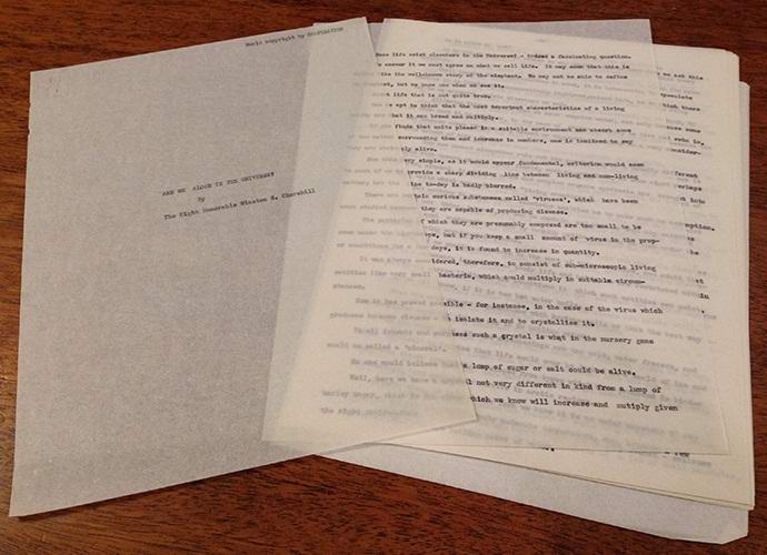 Zaposleni v Narodnem muzeju Winston Churchill v Ameriki mesto Fulton je v svojih arhivih postavilo presenetljivo najdbo. V osnutek članka je bil najden ob enajstih listi, ki jih je enkrat napisal britanski premier in pripovedujejo o nezemeljske civilizacije.