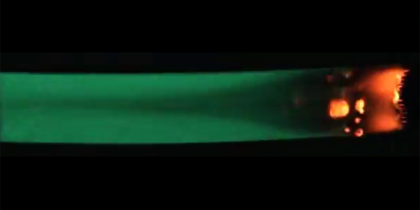 Zamrzni okvir iz videa eksperimenta Saffire-II za preučevanje širjenja plamena v vesolju na tovorni ladji Cygnus
