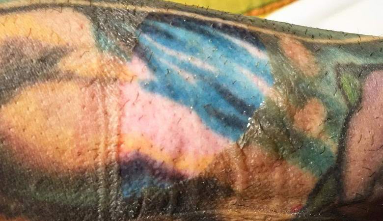 Ko se je koža na mestu opeklin olupila in začela varno ozdravi, naš junak je bil presenečen, ko je ugotovil, da je njegov zbledel tetovaže so ostale znotraj tako svetle kot po nanosu! Mnogi uporabniki spleta niso verjeli resničnosti teh okvirjev, glede na to, da imamo rezultat spretne namestitve.
