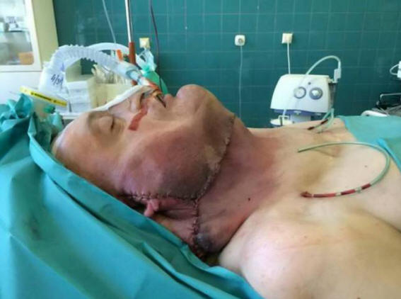 Slovaški zdravniki iz vasi Martin so odstranili 6 kilogramov oteklina z obraza lokalnega vodovodarja Stefana Zoleyka. Čudno izobraževanje je začelo rasti na bradi pred 20 leti in od takrat nato nenehno povečevala. Zaradi redke bolezni moški več let ni odšel od doma.