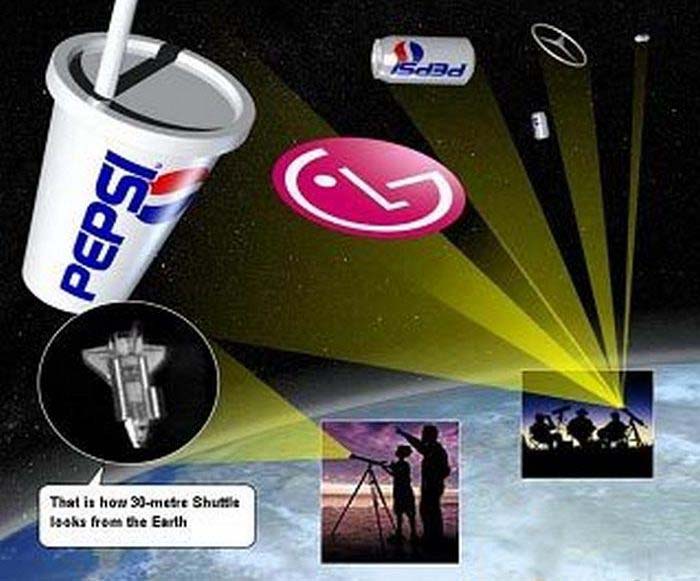 Vendar pa najbolj pesimistični znanstveniki opozoriti, da je želja po prinašanju oglaševanja v vesolje (in podobno) težnje v sodobnem svetu brezsramnega poslovanja obilujejo, zlahka ga zasledimo, na primer tudi NASA) obrnite ne le vesoljska plovila v orbiti smeti, pa tudi razgaljenih vseh vrst jasnega neba z oglaševanjem. In ta najstrašnejša reklama v zgodovini razvoja marketinga (slabše kot vsako vreme) je ni več mogoče izklopiti z enim klikom gumb za daljinski upravljalnik “TV”. Poglejte ali spustite pogled na tla, ali nosite posebna očala proti oglaševanju (namesto sončnih očal), kajti zagotovo bodo podjetni podjetniki o tem razmišljali že prej. Vendar pa z brisanjem oglaševanja takšna očala (tudi najdražja in popolno) se nam nikoli ne vrne lepo modro nebo zgoraj glava …
