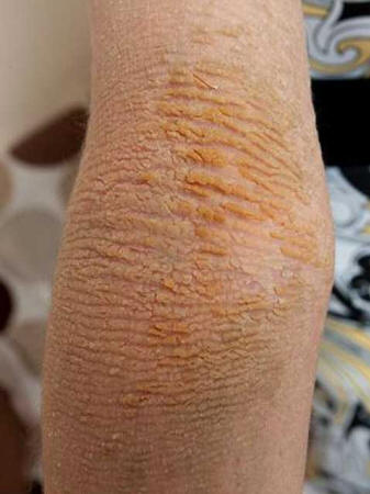 Mati dveh otrok je pokazala, kako je kot kača odstrani kožo zaradi redke bolezni, zaradi katere jo koža se oprime 14-krat hitreje kot zdravi ljudje.