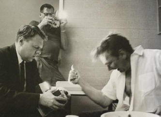 Fotografija iz odprtih virov Ob reki (1965) Ted Serios in zdravnik Eisenbud je pri poskusu delal tri leta. Medtem ko drži tako imenovani “pripomoček” (kos papirja, zložen v majhno cev na začetku vsake poskusne seje) pred objektivom kamero, Serios je objektiv usmeril na čelo. Izpostavljenost je bila opravljena ob signalu Seriosa – s klikom prsta ali ustnim ukazom.