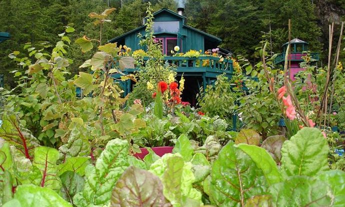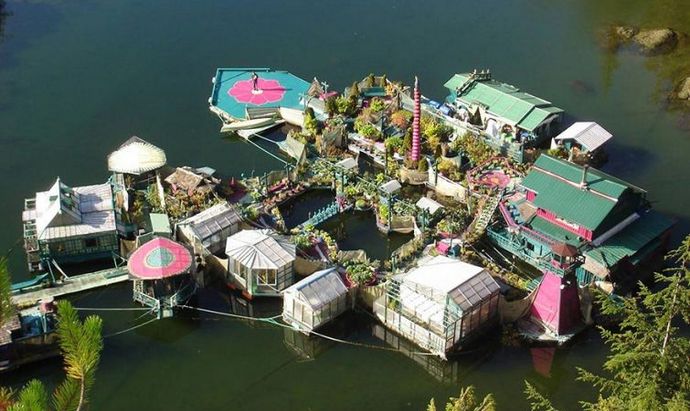 Fotografija iz odprtih virov zdaj nekateri vzamejo to neverjetno gradnja na vodi v bližini otoka Vancouver British Columbia za nekakšen zabaviščni park. V resnici gre za kompleks ploščadi hišnega čolna, ki so jih zgradili več kot dvajset let Katherine King in Wayne Adams zase.