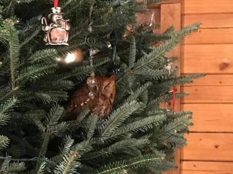 Družina Newman v Gruziji toliko sreče, da je oblekel božično drevo z živo sovo, ki se je skrivala v gostih vejah zelene lepotice.
