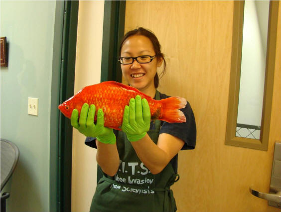 V globinah jezera Tahoe v Kaliforniji (ZDA) so našli novo neverjeten pogled – velikanska zlata ribica. V iskanju invazivnih vrste rib (ki so jih slučajno vnesli ljudje) znanstveniki našli v tem jezeru zlata ribica dolga pol metra in tehta dva kilograma.