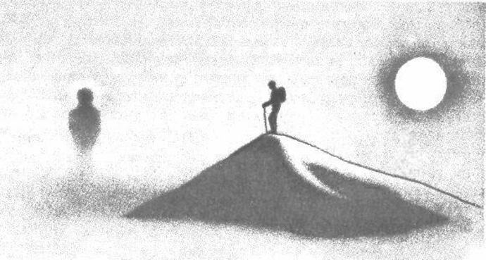 Moški je bil obkrožen s halo, ki spominja na ikonični halo svetnik. Velikan se je zdel bistveno višji od cerkve, v kateri pastir je molil v nedeljo. Prizadeti pastir je dvignil roko in mahnil velikanu. Nenadoma je pomahal nazaj. Pastir se je prestrašil močnejši kot prej in stopil korak nazaj. Tam temna silhueta v megli izginil.