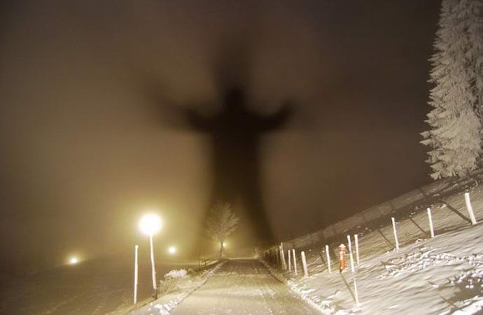 Podob strtega duha je razviden, če je vključen v megleni nočni žarometi avtomobila in stojite pred njimi. V megli jasno se bo pojavila velika in voljna človeška senca.